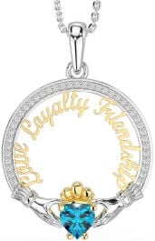 Diamond Topaz Gold Silver Irish "Love, Loyalty, & Friendship" Claddagh Necklace