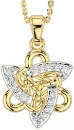 El nudo de la trinidad: es el diseño celta más conocido. Decoraba los manuscritos iluminados de Irlanda, como el Libro de Kells, y también se encuentra en cruces celtas y piedras celtas en toda Irlanda. Representa la eternidad y la continuidad. En el cristianismo se utiliza para representar a la Santísima Trinidad: Padre, Hijo y Espíritu Santo. Se cree que muestra el flujo continuo de energía de la vida y la muerte. El nudo interminable puede simbolizar el amor y el compromiso interminable dado en las bendiciones sagradas de los votos matrimoniales. Los tres nudos pueden representar el pasado, presente y futuro de la relación.