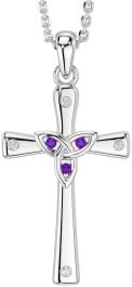 Diamant Ametyst Sølv Celtic Kryss Treenighet Knute Halskjede