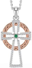 Diamond Emerald Rose Gold Silver Celtic Cross Necklace