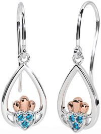Topaz Rose Gold Silver Claddagh Dangle Earrings