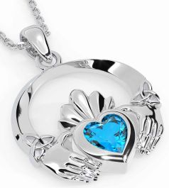 This Claddagh Trinity knot Necklace comes in Gold and Silver set with a choice of Diamonds and Gemstones. The current selection is made from . Set with a . . . .