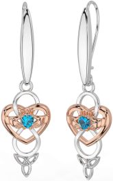 Topaz White Rose Gold Celtic Claddagh Infinity Trinity Knot Dangle Earrings