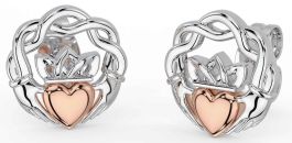 White Rose Gold Celtic Claddagh Stud Earrings