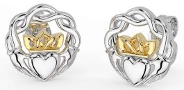White Yellow Gold Celtic Claddagh Stud Earrings