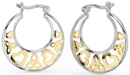 White Yellow Gold Celtic Trinity Knot Heart Hoop Earrings