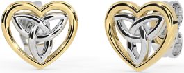 White Yellow Gold Celtic Trinity Knot Heart Stud Earrings