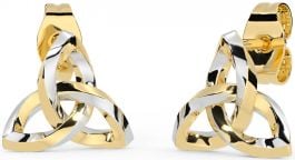 White Yellow Gold Celtic Trinity Knot Stud Earrings