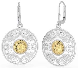 White Yellow Gold Celtic Warrior Dangle Earrings